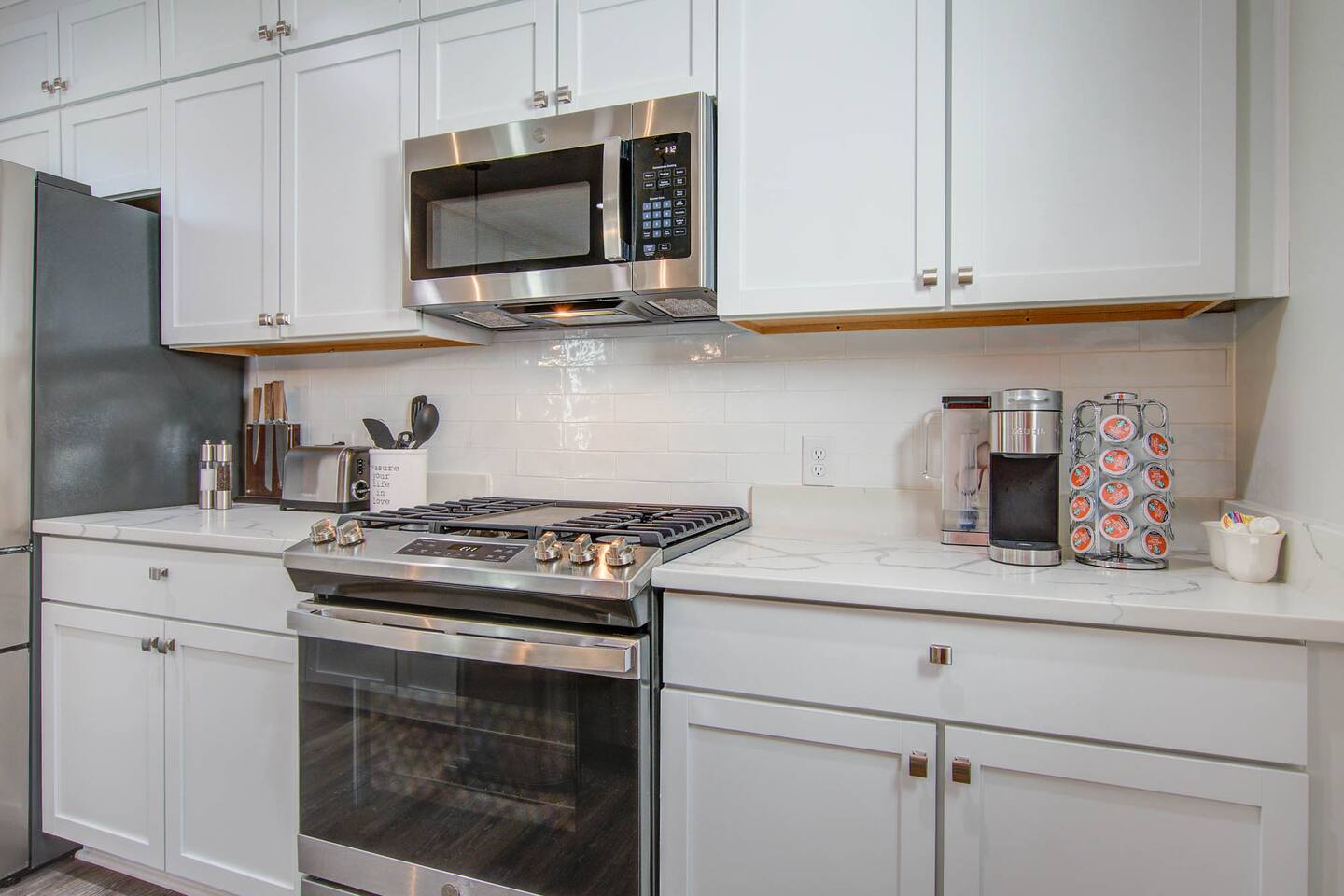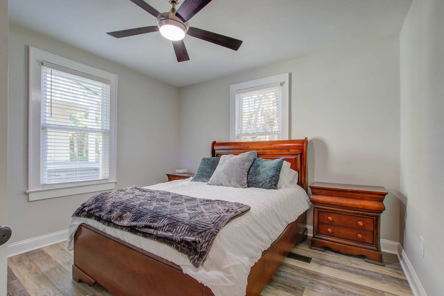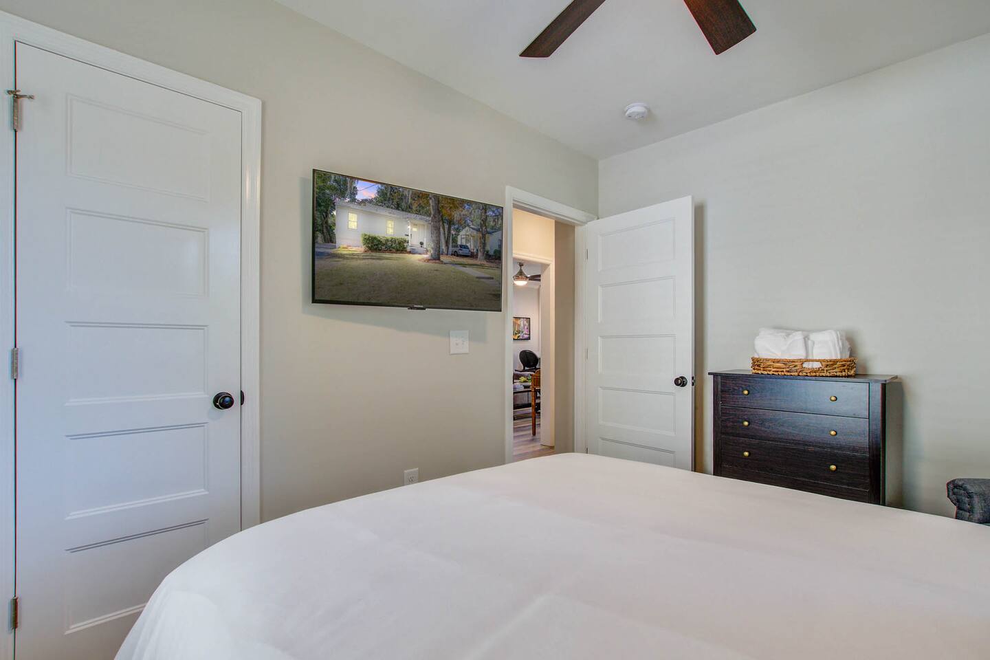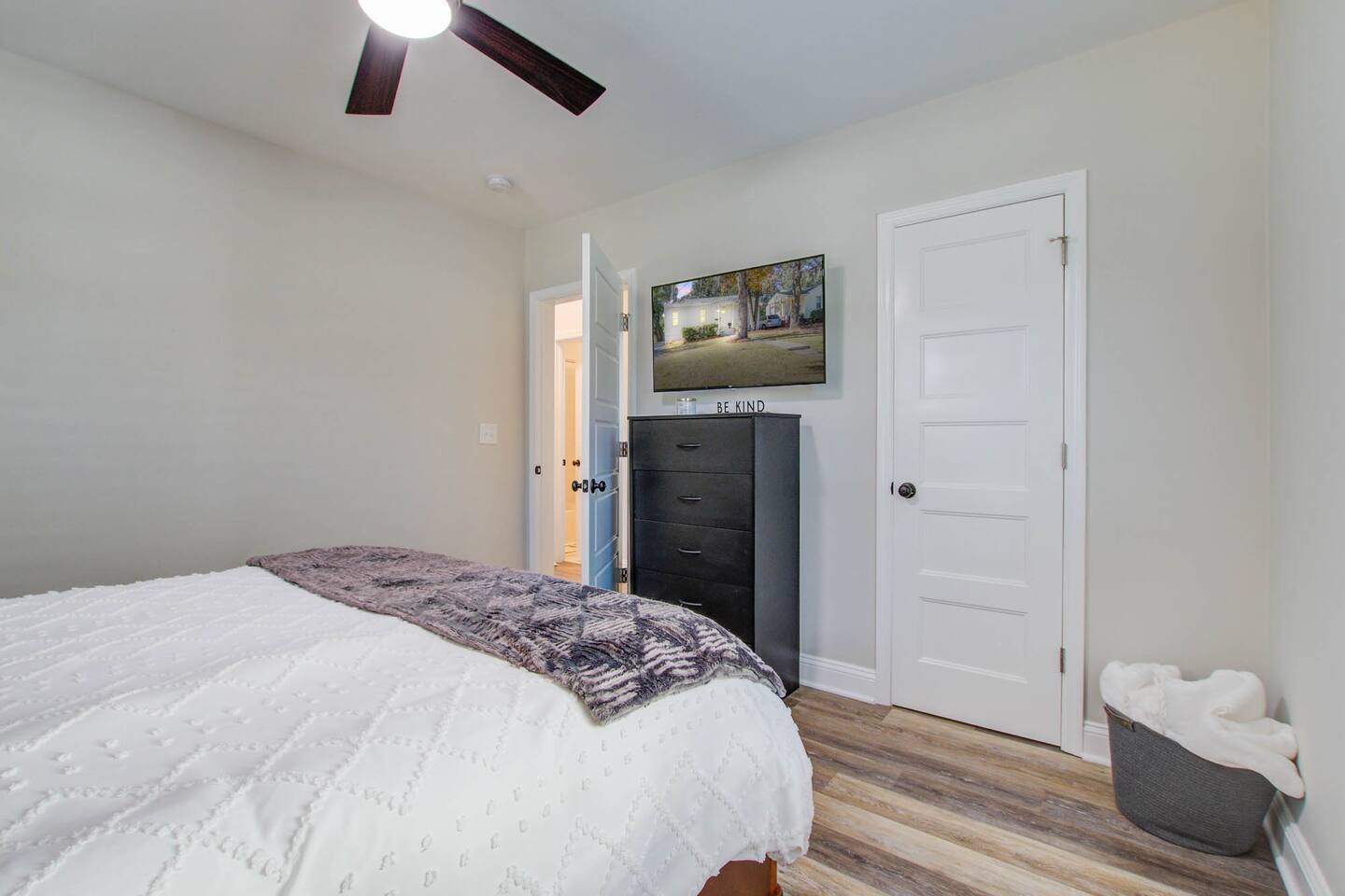 Master Bedroom Queen bed 40” Smart tv Dual Head walk-in shower High thread count bed sheets Full length mirror Iron and Ironing board Spacious closet Blue Room Full size bed 40” Smart tv Full length mirror Closet Gray Room Queen size bed 40” Smart tv High thread count bed sheets Spacious closet